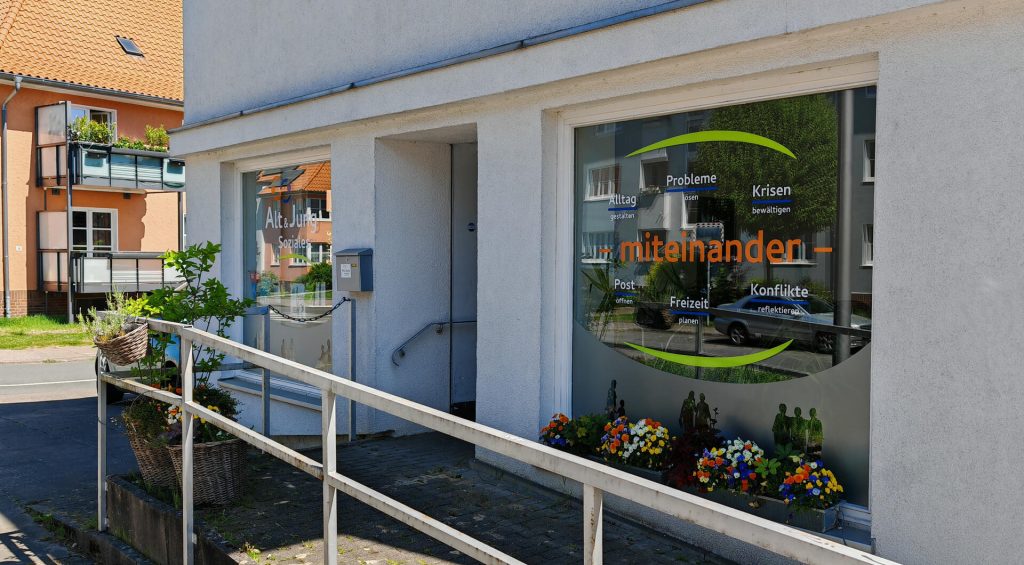 Unser zentrales Büro – die Geschäftsstelle – befindet sich nahe der Sudbrackschule an der Ecke Apfelstraße / Klarhorststraße und war mal eine Bäckerei. Der Eingang ist an der Apfelstraße und gut durch die bunt beklebten Fenster zu erkennen. Die Adresse lautet: Klarhorststr. 23, 33613 Bielefeld.